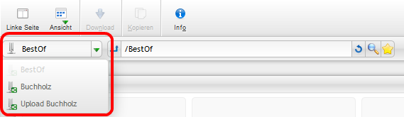 Die Login-Daten ermöglichen Euch den Zugang zu mehreren Ordnern, zwischen denen ihr im Auswahlfeld (Drop-Down-Menü) oben links auf der Website wechseln könnt (zum Beispiel "1_Kirche", "2_Kaffeetrinken" usw.).
